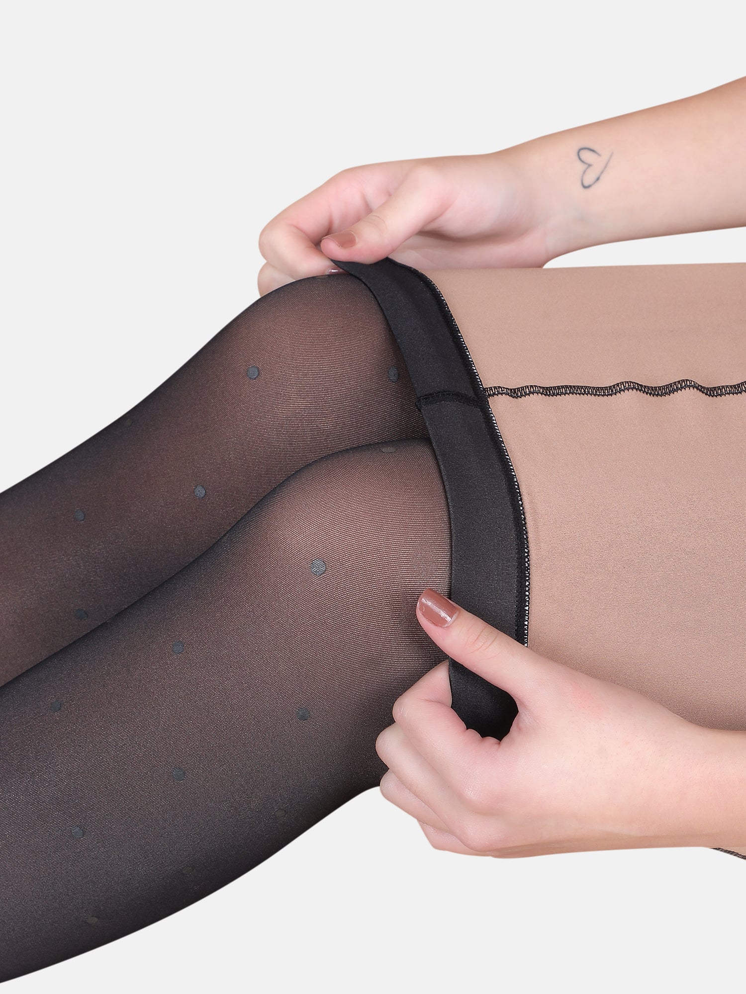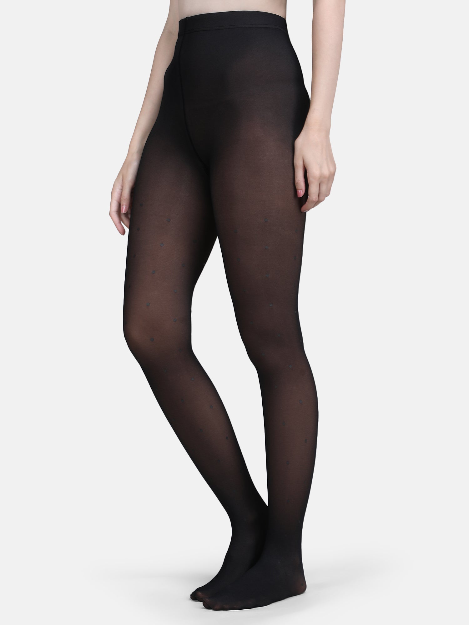 Dual-Tone Faux Sheer Polka Dot Stockings-Black