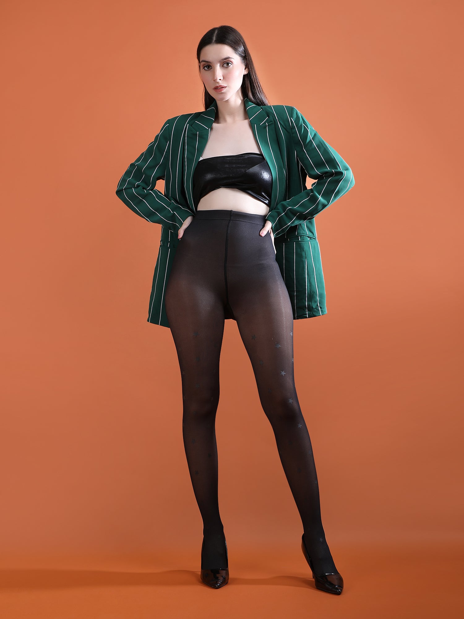 Dual-Tone Faux Sheer Star Pattern Stockings-Black